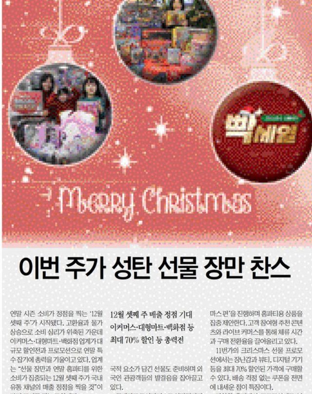 연말 시즌 소비가 정점을 찍는 ‘12월 셋째 주’가 시작됐다. 고환율과 물가 상승으로 소비 심리가 위축된 가운데 이커머스·대형마트·백화점 업계가 대규모 할인전과 프로모션으로 연말 특수 잡기에 총력을 기울이고 있다. 업계는 “선물 장만과 연말 홈파티를 위한 소비가 집중되는 12월 셋째 주가 국내 유통 채널의 매출 정점을 찍을 것”이라며 고삐를 쥐는 모양새다.