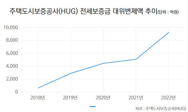 주택도시보증공사(HUG) 대위변제액 추이. = 박선린 기자