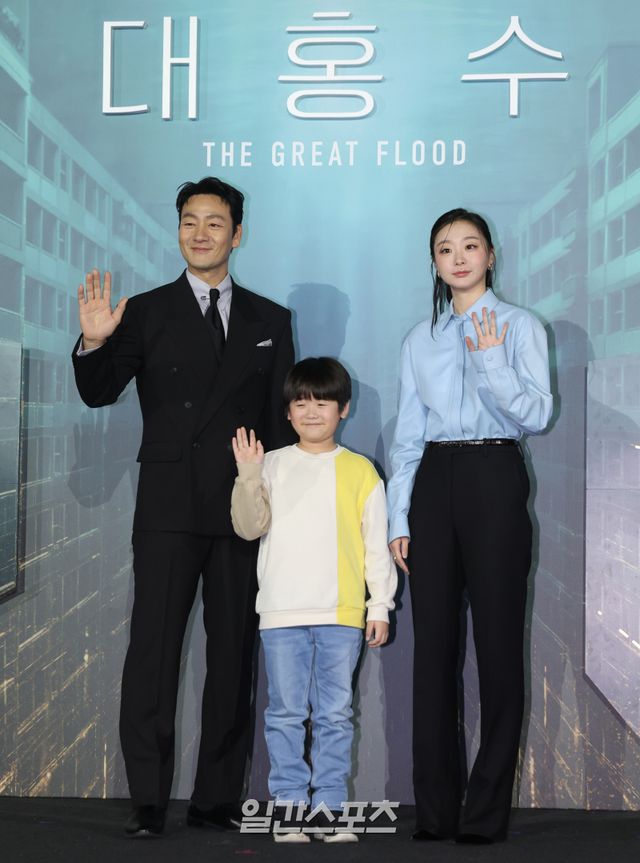 ‘대홍수’는 대홍수가 덮친 지구의 마지막 날, 인류가 살아남을 수 있는 마지막 희망을 건 이들이 물에 잠겨가는 아파트 속에서 벌이는 사투를 그린 SF 재난 블록버스터물이다. ‘더 테러 라이브’ ‘PMC: 더 벙커’ 등 극한 상황을 소재로 한 영화를 연출한 김병우 감독의 신작이자, 첫 넷플릭스 협업이다.