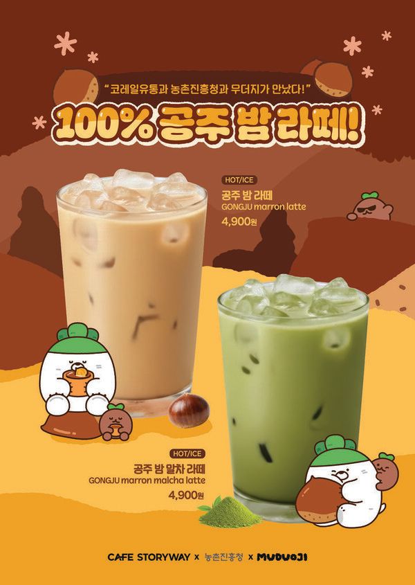 농촌진흥청과 코레일유통은 충남 공주 특산물 밤을 주원료로 만든 겨울 음료 '공주 밤 라떼', '공주 밤 말차 라떼' 2종을 출시했다고 밝혔다.