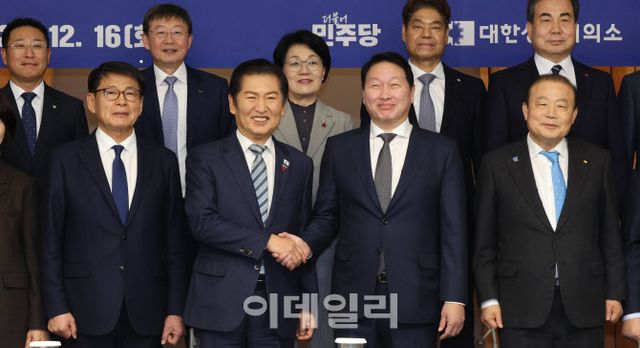 최 회장은 16일 서울 중구 상의 회관에서 열린 더불어민주당-대한상의 정책 간담회에서 지역 소멸 대응과 산업 경쟁력 강화를 위한 정책 방향을 놓고 민주당 지도부, 주요 기업 관계자들과 머리를 맞댔다.