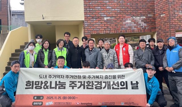 지난달에는 '2025 희망&나눔 주거 환경 개선의 날'을 운영했다. 주거 취약 계층의 노후 주택을 고치고 지역 사회에 나눔의 가치를 확산하기 위해 민·관·기업이 협력하는 공익 행사로 기획된 자리다. 이날 제주시 지역의 장애인 가정에서 화장실, 거실, 방 등을 개·보수하고 생활 환경을 정비하는 봉사 활동을 펼쳤다.