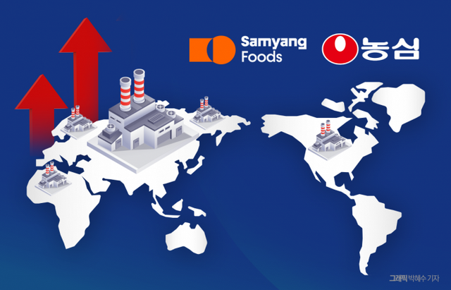 농심도 해외 매출 확대를 위한 생산 역량 강화에 속도를 내고 있다. 해외 매출 비중 60% 달성을 목표로 농심은 2029년까지 1조2000억원을 투입해 글로벌 공급망을 구축한다. 부산 녹산에 건설 중인 수출전용 공장은 2026년 하반기 완공을 목표로 하고 있으며, 가동 시 라면 생산 능력은 기존 연 7억개에서 12억개로 1.7배 늘어난다.