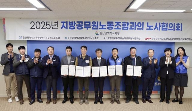 [파이낸셜경제=김영란 기자] 울산광역시교육청은 16일 정책회의실에서 울산광역시교육청일반직공무원노동조합, 울산광역시교육청공무원노동조합, 울산광역시교육청기술직공무원노동조합, 전국공무원노동조합 울산교육청지부 등 4개 지방공무원 노동조합연대와 ‘2025년 하반기 노사협의회 합의문’에 서명했다.