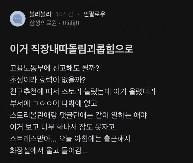 스토리에 초성으로 회사사람 이름 올려놓고