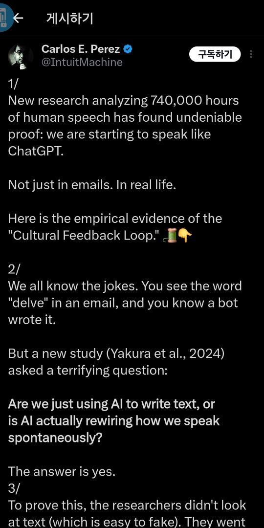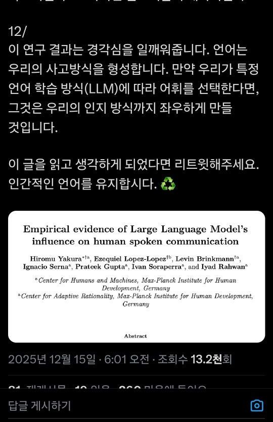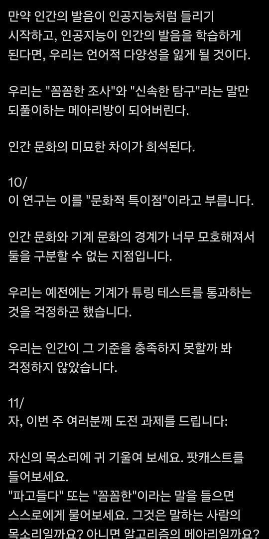 본문에 나온 것 처럼 언어는 인지에 큰 영향을 미치기 때문에 획일화되면 좋지 못할 것 같은데..언어란 자신만의 방식으로 세계를 표현하는 거 잖아요?