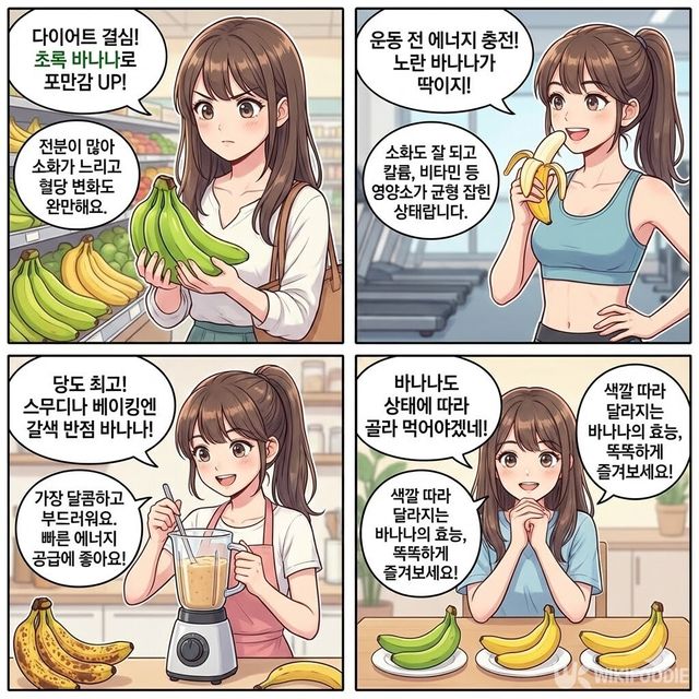 익숙한 과일이지만, 바나나는 익는 과정에 따라 몸에서 받아들이는 방식이 분명히 달라진다. 껍질 색이 변하는 동안 내부 성분 비율도 함께 달라지기 때문이다. 같은 바나나라도 상태에 따라 역할이 나뉜다는 점은 생각보다 잘 알려지지 않았다. 지금부터 껍질 색에 따라 달라지는 바나나의 특징을 차례로 살펴본다.