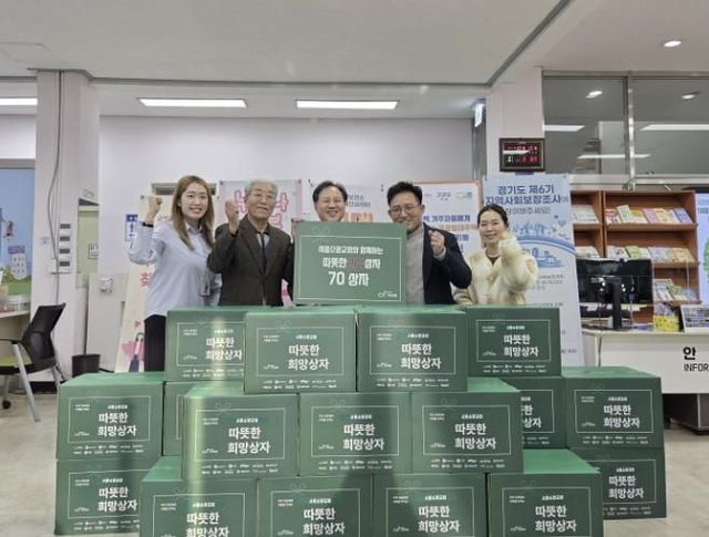 [와이뉴스] 시흥시 군자동에 있는 시흥소망교회가 국제구호 NGO ‘희망친구 기아대책’와 함께 지난 12월 15일 군자동 행정복지센터에 따뜻한 희망상자 70상자(700만 원 상당)를 기부했다.