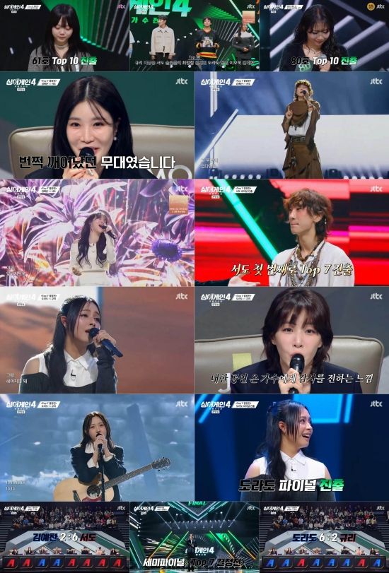 세미파이널 ‘TOP 7 결정전’은 파이널을 향한 마지막 관문인 만큼 콘서트를 방불케 했다. 가수들은 자신이 지목한 상대와 1 대 1 맞대결을 펼치며 승리한 가수는 파이널에 자동 진출, 진 가수는 탈락 후보가 된다. 어게인 수가 동률이 나오면 심사위원단 회의를 통해 한 명이 TOP 7에 진출할 수도 있고, 두 명 모두 탈락 후보가 되어 패자 부활전을 치를 수도 있다. 무엇보다 이번 세미파이널의 패자 부활전은 ‘싱어게인’ 사상 처음으로 현장 관객 투표가 진행된다는 점에서 특별하다.
