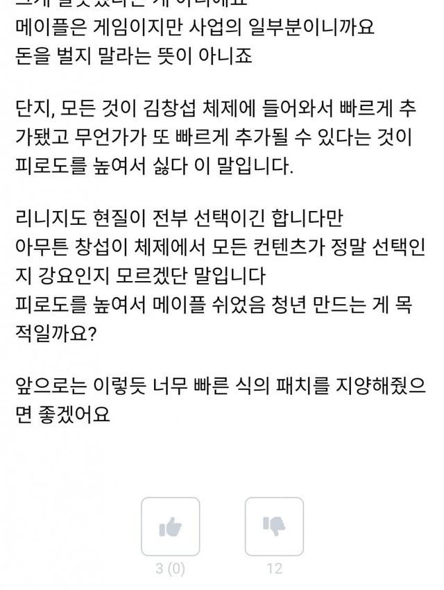 새벽에 잠깐 올라왔다가 지금은 지워진 글