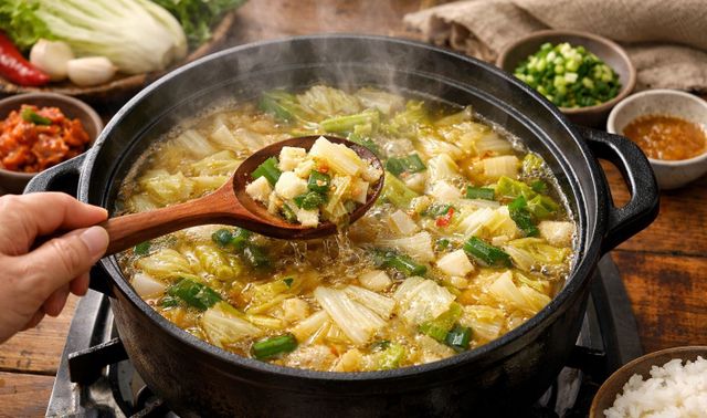 배추를 바로 끓이기보다 들기름이나 참기름에 살짝 볶아 주면 세포벽이 부드러워지면서 감칠맛의 바탕이 만들어진다. 이 과정에서 마늘을 함께 넣어 약불에서 천천히 볶는 것이 중요하다.