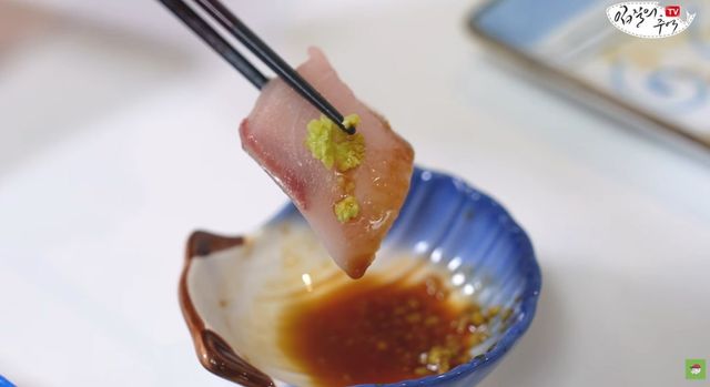 방어회 한점. / 유튜브 '입질의추억TV jiminTV'