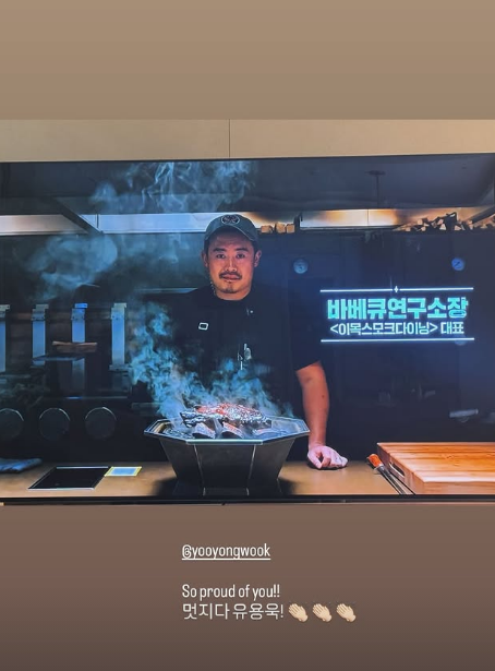 공개된 사진은 한효주가 넷플릭스 ‘흑백요리사: 요리 계급 전쟁2’(이하 ‘흑백요리사2’) 시청 중 촬영한 화면이 담겨있다. 장면 속엔 흑수저 닉네임 ‘바베큐연구소장’으로 출연한 유용욱 셰프의 모습이 담겼다.