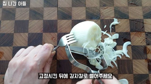 양파에 포크 꽂기 / 유튜브 '집나간아들 Runaway Son'