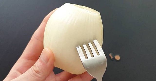 양파에 ‘포크’만 푹 찍으면 되는, 고깃집 부럽지 않은 초간단 손질법이 화제를 모으고 있다.