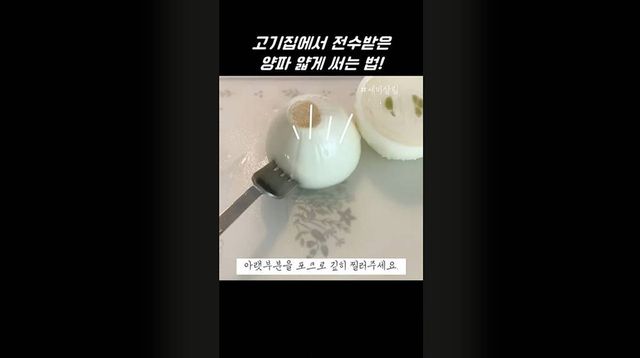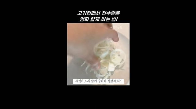 해당 팁은 유튜브 채널 ‘세미살림 SEMILY LIVING’이 올린 “고깃집에서 전수받은 양파 써는 법! 양파가 투명하게 비치네요. 양파 얇게 써는 꿀팁” 영상에서 소개됐다. 영상에서 유튜버는 “고깃집처럼 얇고 곱게 썰린 양파 집에서도 만들 수 있다”며 “먼저 양파 껍질을 벗겨준다. 그다음 양파를 물에 씻어준다. 이제 양파를 반으로 잘라준다. 도마 위에 양파를 놓고 아랫부분을 포크로 깊이 찔러준다. 포크가 꽂힌 상태에서 감자 깎는 슬라이스 칼로 잘라준다. 투명하도록 얇게 양파가 썰린다”고 말했다.