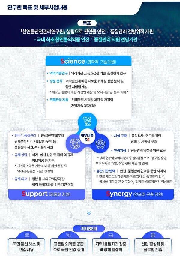 뉴시스 보도에 따르면, 식약처는 천연물의약품의 안전성 확보와 국내 산업 활성화를 도모하기 위해 설립된 천연물안전관리연구원의 준공식을 17일 개최했다고 밝혔다.