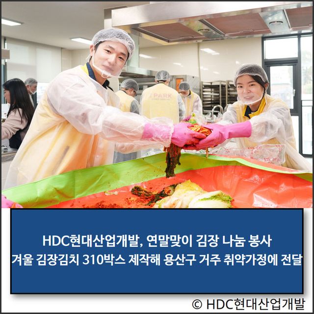 봉사활동에 참여한 HDC현대산업개발 직원은 "작은 손길이지만 함께 모은 정성이 누군가의 겨울 식탁을 따뜻하게 채울 수 있기를 바란다"며 "앞으로도 그룹 사회공헌 활동에 꾸준히 참여해 지역사회를 위한 봉사활동을 이어가고 싶다"고 말했다.