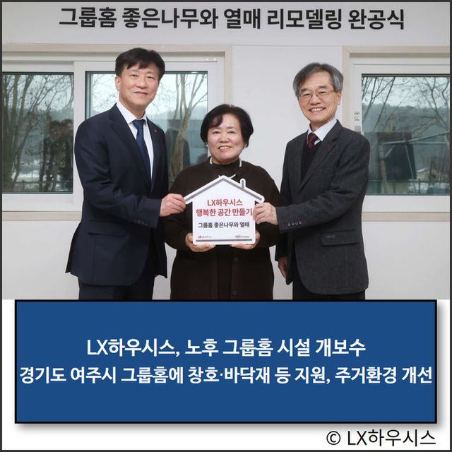 LX하우시스(108670)가 경기도 여주시에 위치한 그룹홈(공동생활가정) 시설인 '좋은나무와 열매'의 개보수를 완료했다.