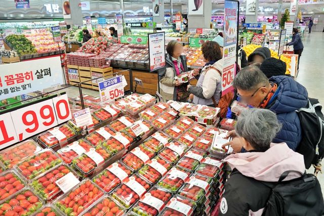 롯데마트에서 시민들이 딸기를 살펴보고 있다 / 롯데마트 제공