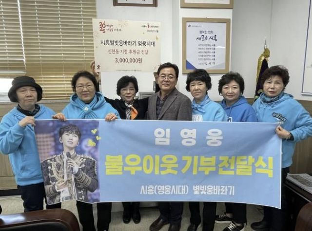 ‘시흥별빛웅바라기 영웅시대’는 지역사회를 위한 나눔과 봉사를 꾸준히 실천해 온 팬클럽으로, 수년간 자발적인 기부 활동을 통해 선한 영향력을 이어오고 있다. 전달된 후원금은 신천동 지역사회보장협의체를 통해 저소득 취약계층의 겨울나기 지원에 쓰인다.