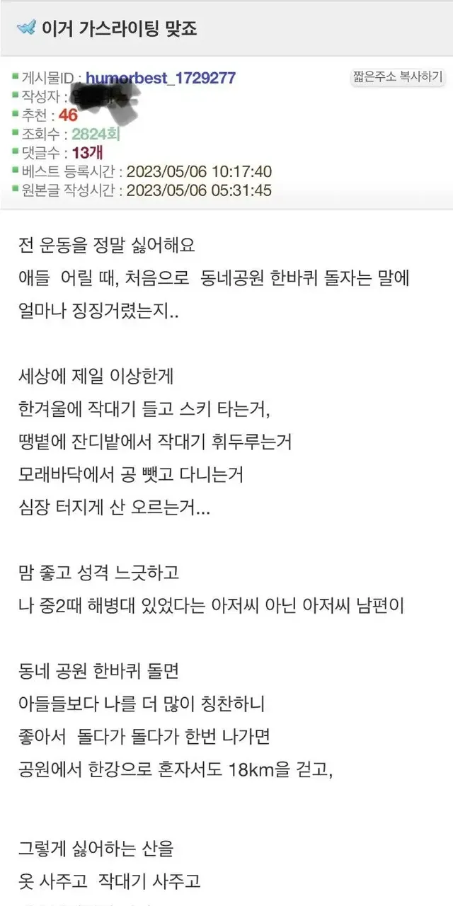 가스라이팅 당했다는 결혼 30년차 주부,,
