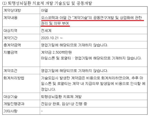 ◇ 오스코텍 "기술 수출 계약 관련 아델이 담당"