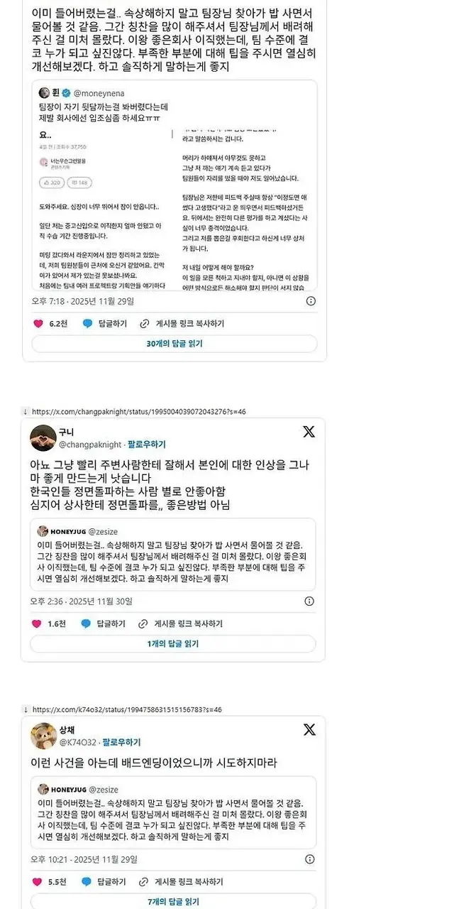 팀장이 뒷담화 하는 걸 들어버린 신입,,
