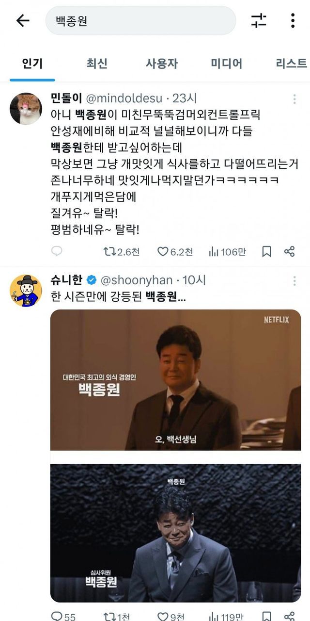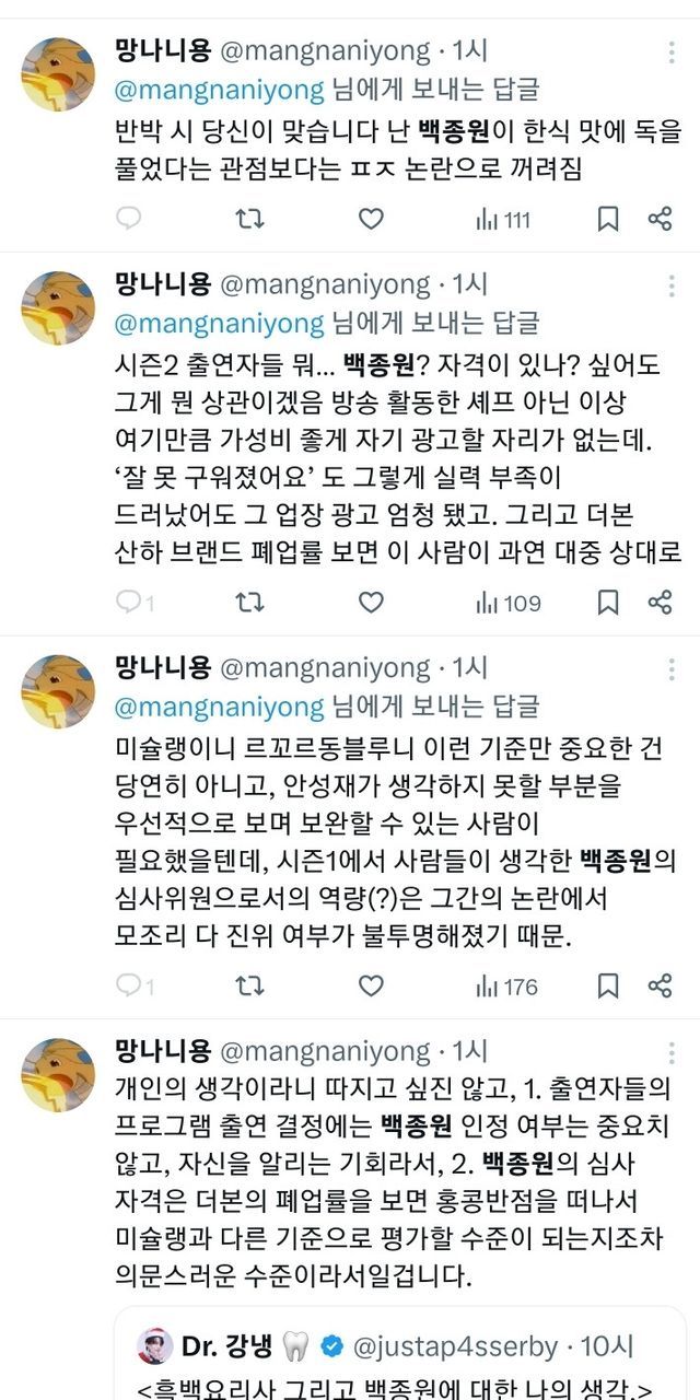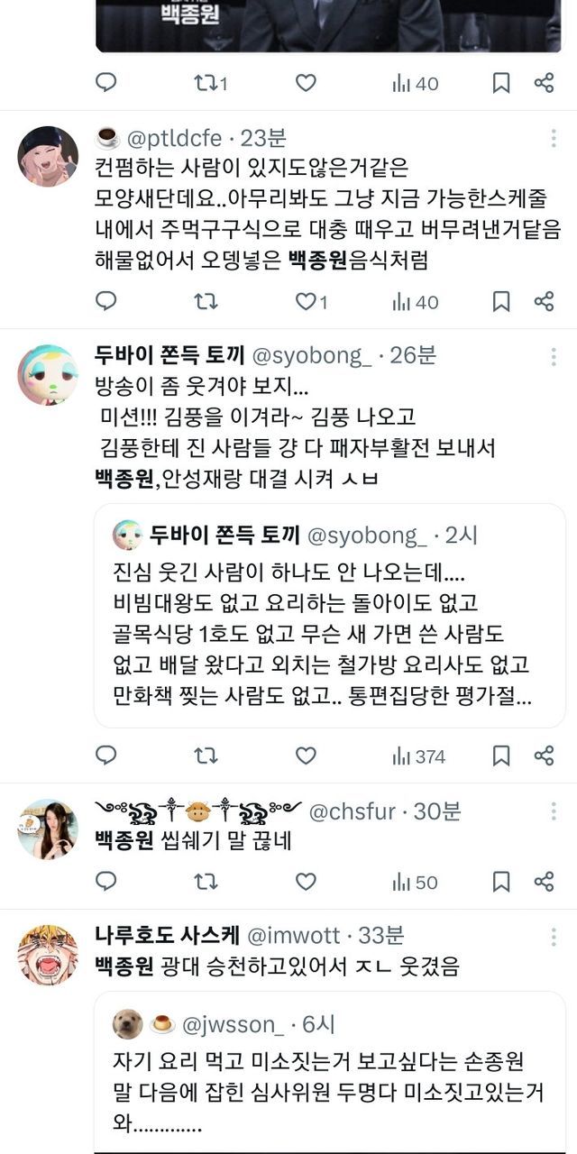 본인 빽보이인데 시즌1에는 백선생님의 블라인드 심사평 보는 재미가 있었는데