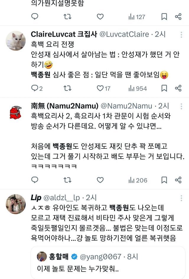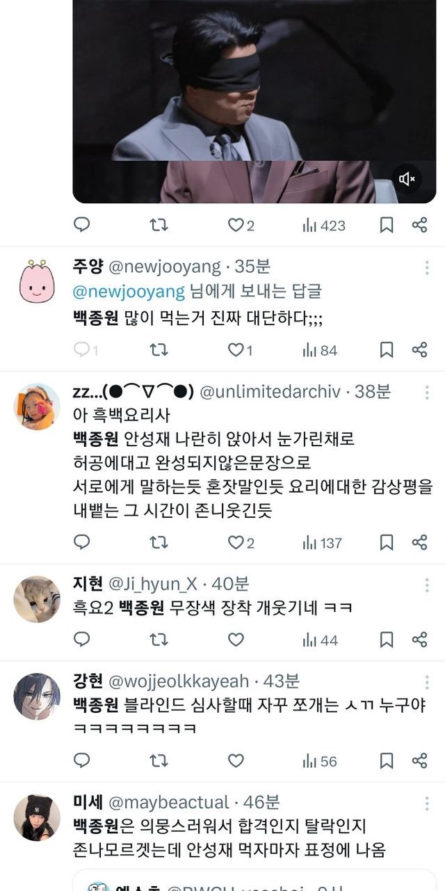 3화 블라인드 시식에서 안대 썼을 때 백대표님이 한 모든 말씀 정리함(감탄사 제외)
