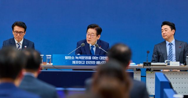 이재명 대통령이 지난 17일 세종시 정부세종컨벤션센터에서 열린 기후에너지환경부(기상청)·원자력안전위원회 업무보고에서 발언하고 있다. / 대통령실 제공, 뉴스1