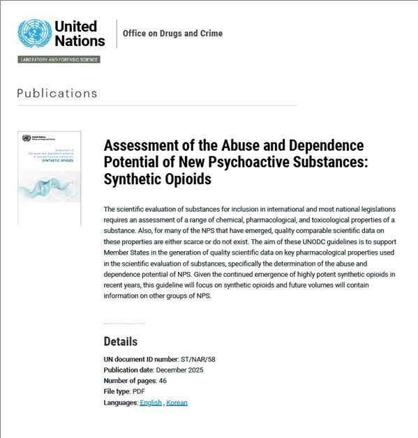 뉴시스 보도에 따르면, 가이드라인에는 신종마약류를 마약류로 지정·관리하기 위해 필요한 과학적 평가 기준이 담겼다.