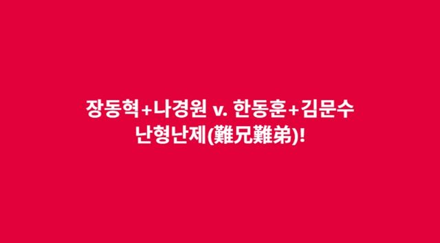 그는 '장동혁+나경원 대 한동훈+김문수'라는 문구가 적힌 붉은색 이미지 한 장을 올린 뒤 "난형난제(難兄難弟)"라고 적었다.