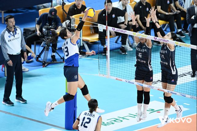 두 팀은 18일 오후 7시 수원체육관에서 2025~26 V리그 여자부 3라운드 맞대결을 펼친다. 17일 현재 도로공사가 승점 35(13승 2패)로 선두를 달리고 있고, 현대건설이 승점 29(9승 6패)로 추격 중이다.