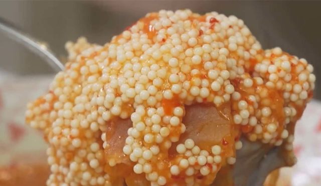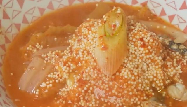둘째는 뚝지 알탕이다. 신김치나 묵은지를 깔고 알과 함께 끓이는데, 국물이 시원하고 개운한 것이 특징이다. 김지민은 "신김치 맛이 굉장히 중요하다"며 "멸치와 다시마로 육수를 미리 내서 끓이면 훨씬 맛있다"고 설명했다. 알이 씹힌다기보다 후르륵 입안으로 빨려 들어가는 느낌이 든다. 톡톡 터지는 식감이 매력적이다.