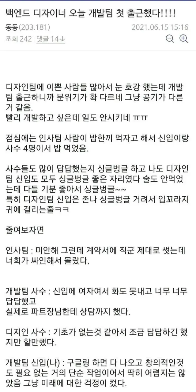 회사에 93년생 여자신입 들어왔는데 솔직히 신기함