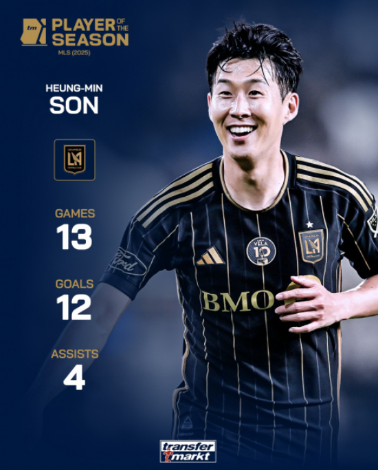 트랜스퍼마르크트는 2025시즌 MLS 최고의 선수를 뽑는 투표를 진행했고, 손흥민이 49.32%의 득표율을 기록하며 수상의 영예를 안았다. 메시는 팬 38.13%의 지지를 받았다.