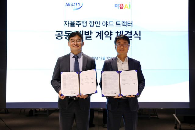[프라임경제] 피지컬 AI 선도기업 마음AI(377480)는 어빌리티시스템즈와 E2E(End-to-End) 기반 자율주행 야드트랙터 검증을 위한 항만 DPG(Digital Proving Ground)를 공동으로 구축하는 계약을 체결했다고 18일 밝혔다.