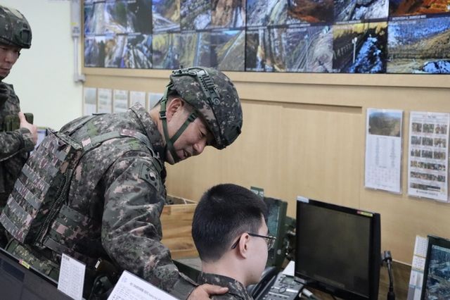 육해공 전방부대 대비태세 점검에 나선 진영승 합참의장이 12월 15일 육군22사 GOP대대를 방문해 임무수행에 매진하고 있는 장병을 격려하고 있다. / 뉴스1