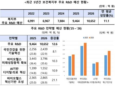 2026년 5개 부처 보건의료 R&D 예산은 2조 4,251억 원으로 전년 대비 14.3% 증가했다.