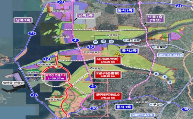 한편, 지역간 연결도로는 주변 경관과 새만금의 정체성을 반영한 특화설계・디자인으로 새만금의 새로운 랜드마크 도로로 조성될 예정이다.