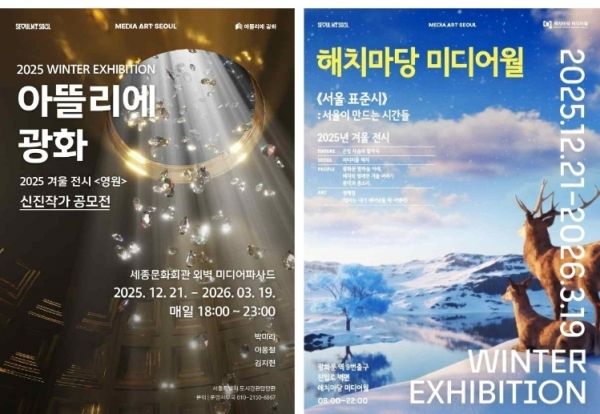 서울시는 21일(일)부터 내년 3월 19일(목)까지 매일 밤 ‘미디어아트 서울’ 전시플랫폼 3곳(▴아뜰리에 광화 ▴해치마당 미디어월 ▴서울로 미디어캔버스)에서 겨울 전시를 무료로 선보인다.