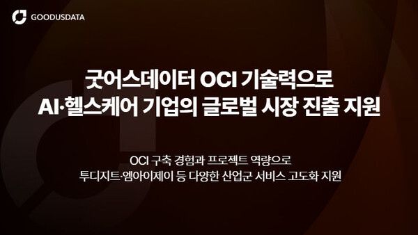 뉴시스 보도에 따르면, 굿어스데이터는 최근 AI·헬스케어 분야 기업들과 협업해 오라클 클라우드 인프라스트럭처(OCI)를 기반으로 한 AI전환(AX) 프로젝트를 연이어 수행하며 글로벌 AI 서비스 확장을 지원하는 스케일업 파트너로서의 역량을 입증했다.