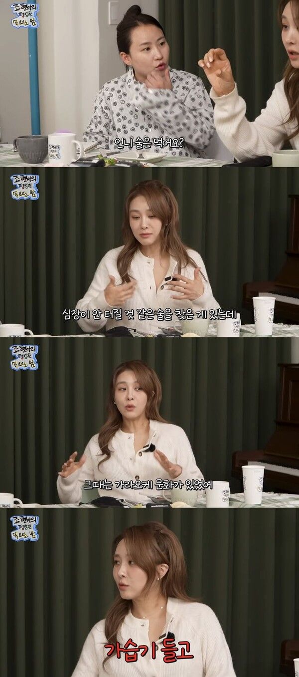 조현아가 "언니 핑클 땐 뒤풀이가 있지 않았냐"고 하자 옥주현은 "친구들끼리 가라오케 문화가 있었다"고 말했다.