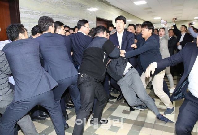 재판부는 기소된 더불어민주당 전·현직 의원과 당직자들의 무죄 취지 주장을 받아들이지 않고 모두 유죄로 봤다. 법원은 “객관적 증거를 볼 때 피고인들의 유형력 행사, 즉 폭행 사실을 인정할 수 있다”며 “현장에서의 반복적 (범행) 공모도 인정된다”고 봤다. 정당행위라는 피고인 측 주장도 받아들이지 않았다.