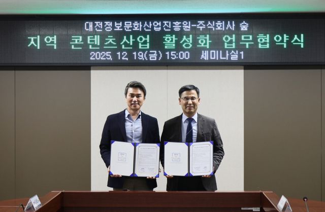 또 이번 협약을 계기로 대전콘텐츠코리아랩, 대전이스포츠경기장, 대전콘텐츠기업육성센터, 대전음악창작소 등 진흥원이 운영하는 주요 콘텐츠 사업과 연계한 다양한 공동 프로젝트를 확대할 계획이다.