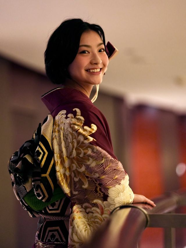 평소 경기장에서 보여주던 운동복 차림과 달리, 미야자키는 붉은색을 바탕으로 호화로운 자수가 놓인 일본 전통 의상 '후리소데'를 입고 등장해 현장을 매료시켰다.