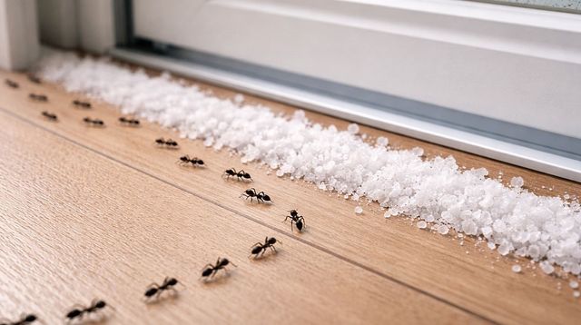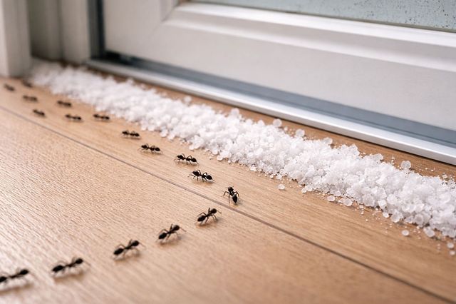 개미의 경우 이동 경로가 비교적 뚜렷하게 드러난다. 벽을 따라 줄지어 이동하거나 창틀 아래로 반복해서 나타난다면 그 경로 위에 소금을 뿌려 주는 것이 좋다. 이렇게 하면 개미의 길이 끊기면서 실내 유입이 눈에 띄게 줄어든다. 다만 물걸레질을 하거나 비가 들이치면 소금이 녹아 효과가 사라지므로 젖었을 경우에는 다시 뿌려 주는 것이 필요하다.
