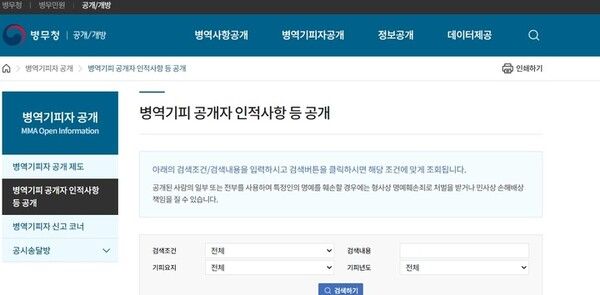 뉴시스 보도에 따르면, 병역의무 기피자 인적사항 등 공개제도는 병역기피자에 대한 조속한 병역의무이행을 엄중히 촉구하고 성실한 병역이행을 유도하고, 공정한 병역 문화 확립을 위해 올해 7월 1일부터 실시하고 있는 제도다.