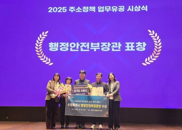 [와이뉴스] 수원특례시가 행정안전부 주관 ‘2025 주소정책 워크숍’에서 ‘2025 주소정책 업무 분야 우수기관’으로 선정돼 행정안전부 장관 표창을 받았다. 특별교부세 4000만 원도 확보했다.